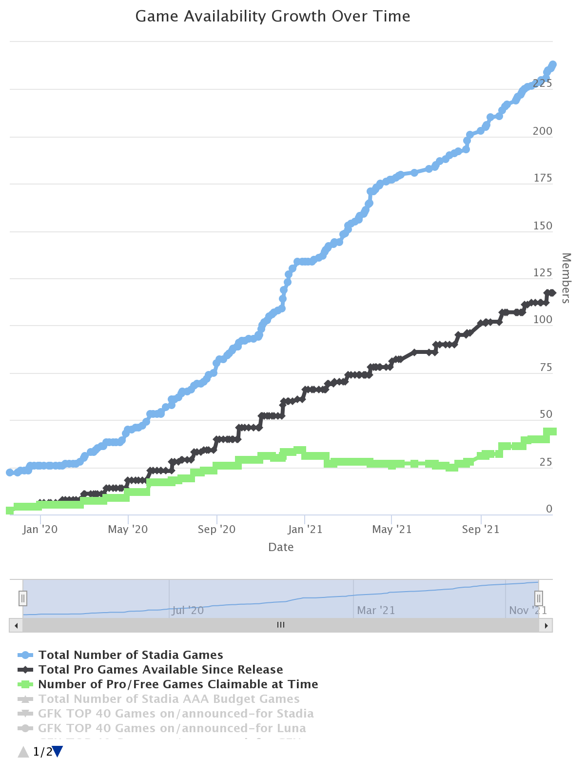 Stadia Pro hit a record number of games currently claimable: 44. Folks who have subscribed since the beginning have claimed 117 games! 100 games have been released in 2021 and the overall library is poised to end the year near the 250 mark.