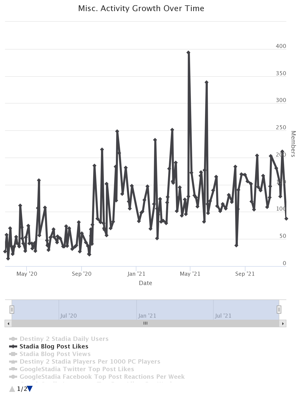 I’ve started tracking more Stadia activity metrics. Check out the history of likes on official Stadia blog posts. Certainly trending up.
