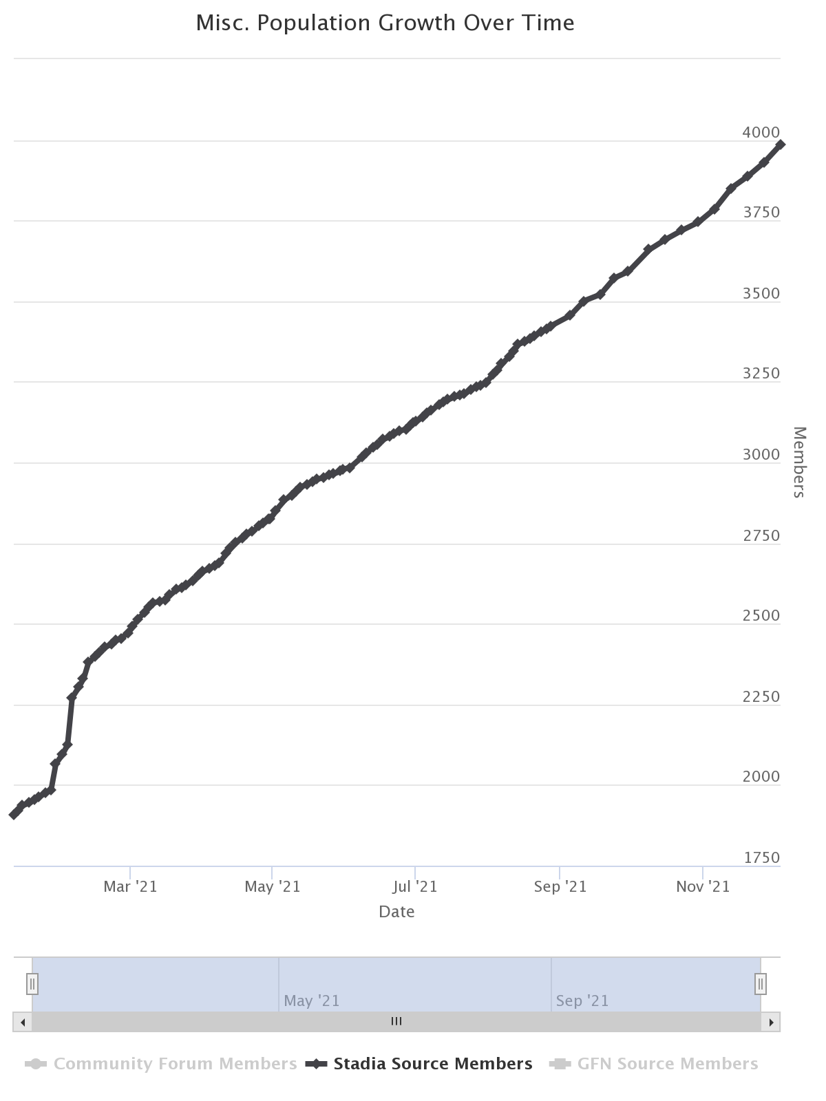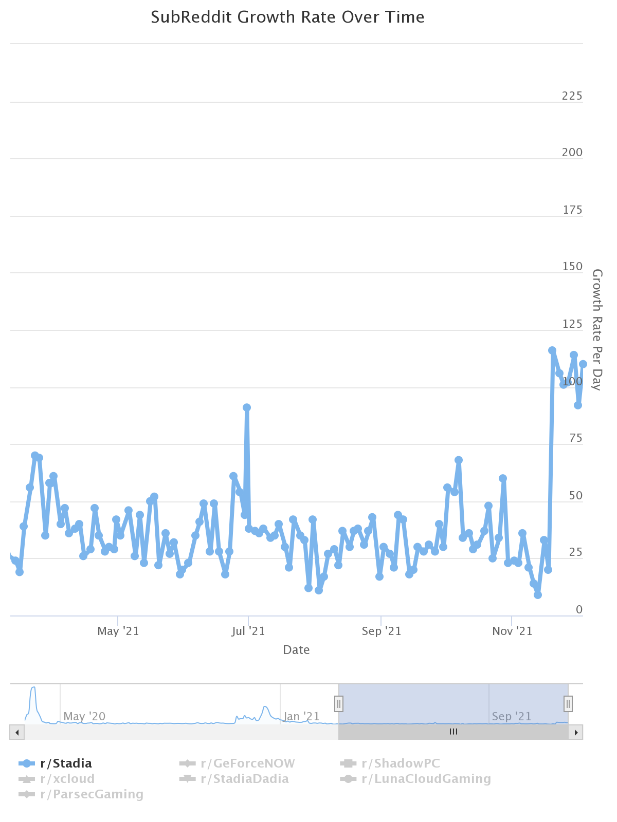 The Stadia subreddit (r/stadia) continues to grow at 100 new names a day – for ~20 days now!
