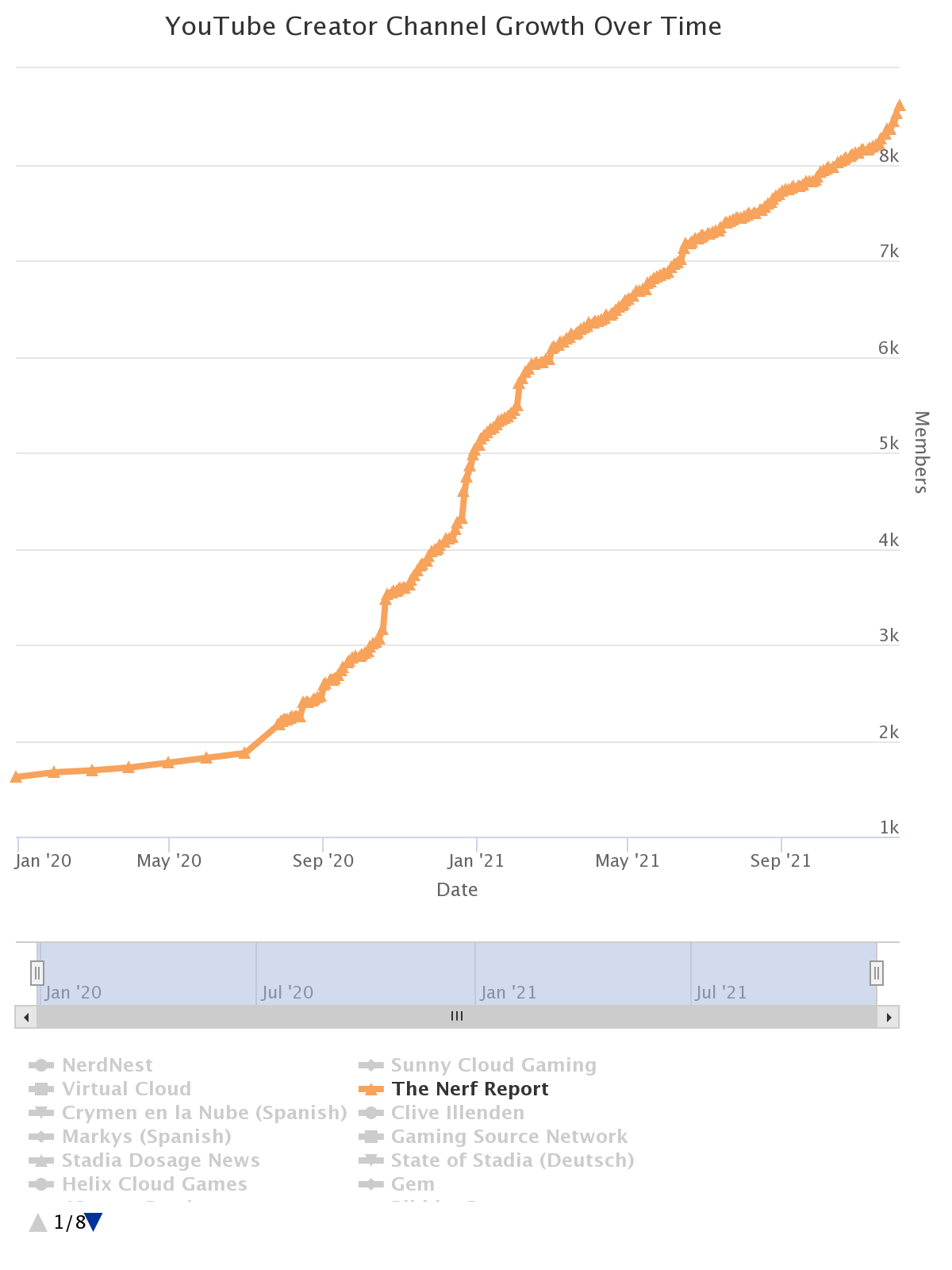 Check out the current fastest growing Stadia positive YouTube channel. The Nerf Report – https://www.youtube.com/c/TheNerfReport – by Bryant is killing it! Closing in on 10K.